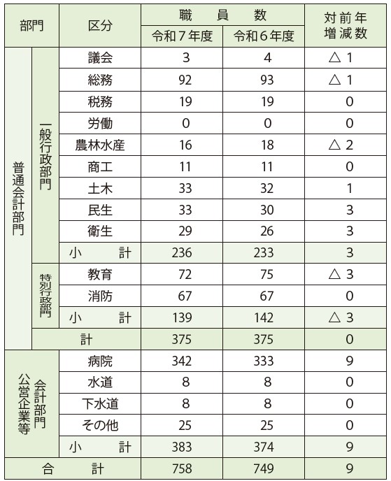 ※職員数は一般職に属する職員数(会計年度任用職員フルタイム勤務職員を含む)です。
