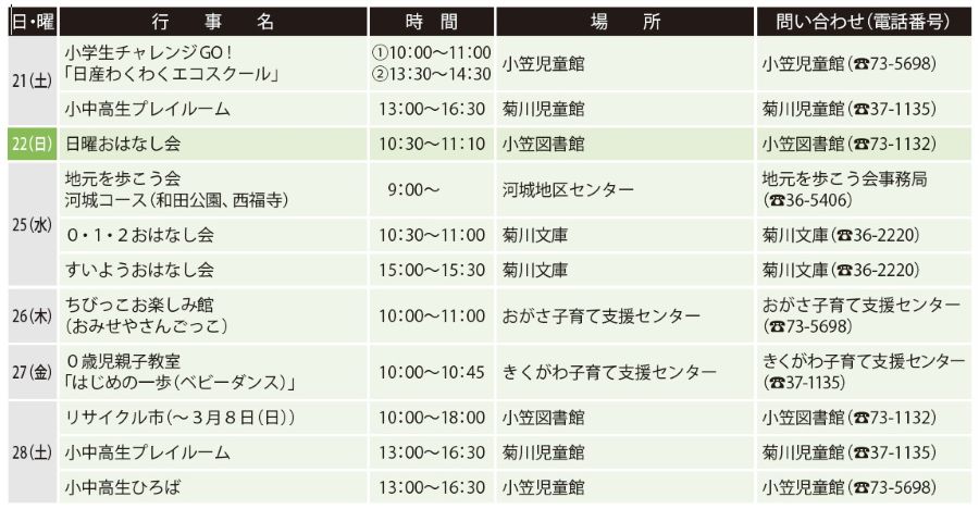 2月15日…市役所小笠支所小笠市民課(【電話】73-1111)