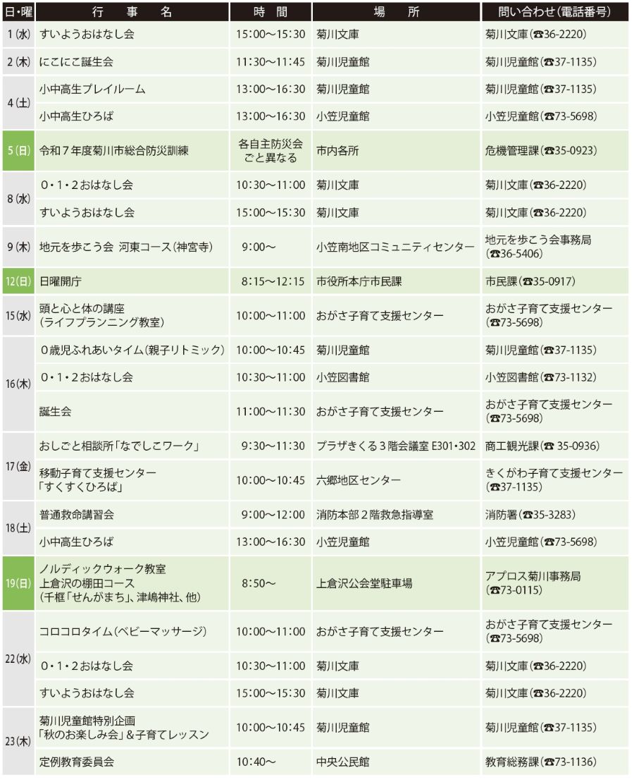 ※現在掲載中の行事などが中止・延期になる場合があります。開催の有無については、市ホームページをご覧いただくか、各問い合わせ先に確認ください。