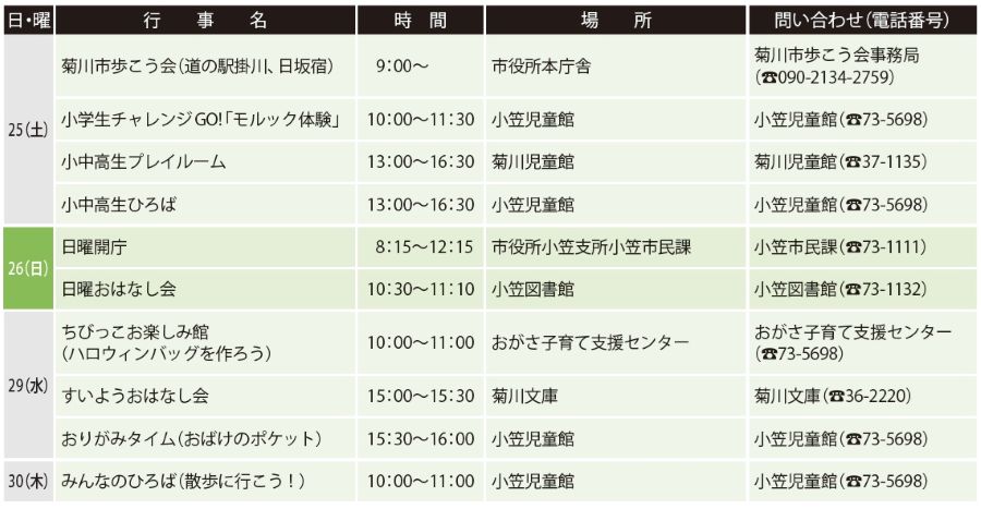 10月26日…市役所小笠支所小笠市民課(【電話】73-1111)