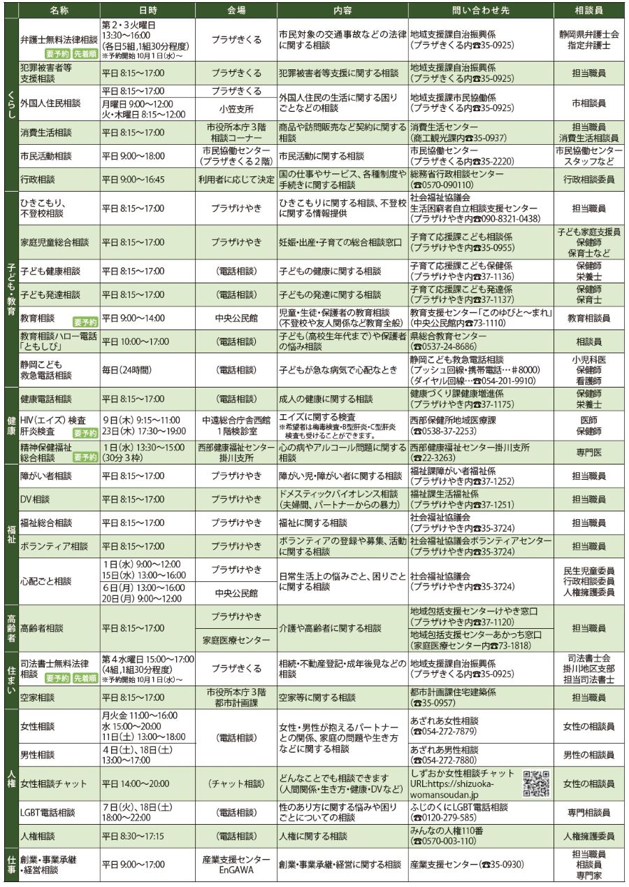 くらし 10月の相談窓口 14/30 前の記事 次の記事 発行日 : 2025年09月18日 自治体名 : 静岡県菊川市 広報紙名 : 広報菊川 令和7年9月号 ※掲載中の相談窓口が中止・延期される場合があります。開催の有無については、各問い合わせ先に確認ください。 Tweet シェアする 令和7年10月 市民カレンダー 平日夜間・休日の救急診療はまず急患診療所