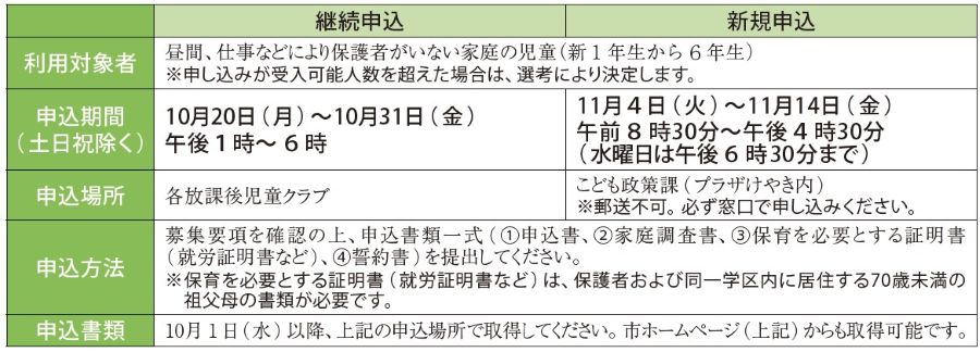 市では、保護者が仕事などにより家庭にいない児童が放課後を安全に充実して過ごせるよう、放課後児童クラブを開所しています。令和8年度の入所申込の手続きについてお知らせします。