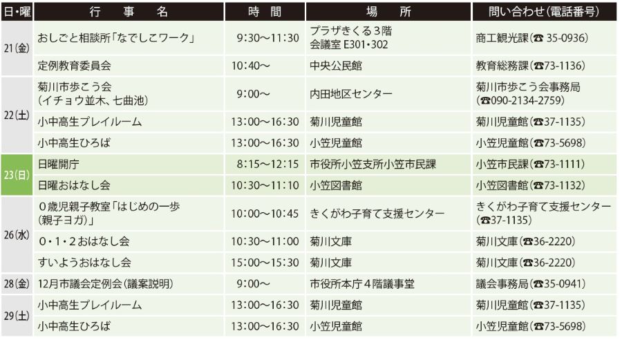 11月23日…市役所小笠支所小笠市民課(【電話】73-1111)
