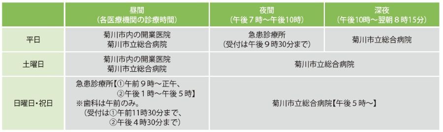 ※入院や手術の必要がない救急診療は、急患診療所をご利用ください。また、受診の場合は、事前に連絡してください。