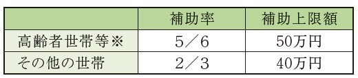 設置費用に補助率を掛けたものと限度額を比較して、いずれか少ない額を補助します。
