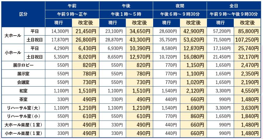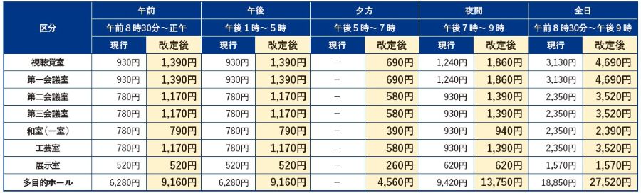 くらし 令和8年4月1日〜 一部の公共施設の使用料を改定します