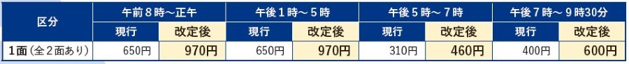 下記は、市民および市内に事業所を有する人の料金です。その他の人が利用する場合は、各問い合わせ先まで連絡ください。