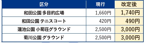 しかし、近年の人件費の上昇や光熱費の高騰により、一部の施設においては必要な経費と現行料金との間に大幅な開きが生じ、不足分は税金で賄っている状況となっていることから、施設やサービスを利用する人と利用しない人との負担の公平性を考え、より適正な料金設定となるよう見直しを行い、使用料を改定することとしました。