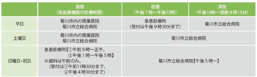 ※入院や手術の必要がない救急診療は、急患診療所をご利用ください。また、受診の場合は、事前に連絡してください。
