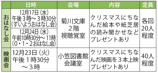12月の休館日(両館共通):1日(月)8日(月)15日(月)22日(月)29日(月)~令和8年1月3日(土)