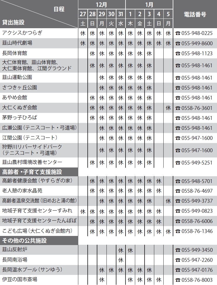■公共施設のお休み 詳しくは直接問い合わせください。
