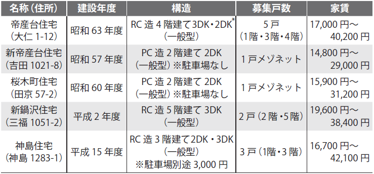 ■入居者を募集する市営住宅 入居予定日:令和8年3月1日(日)