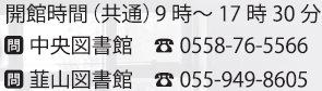 韮山図書館:毎週水曜日、1日(水・祝)~4日(土)、31日(金)
