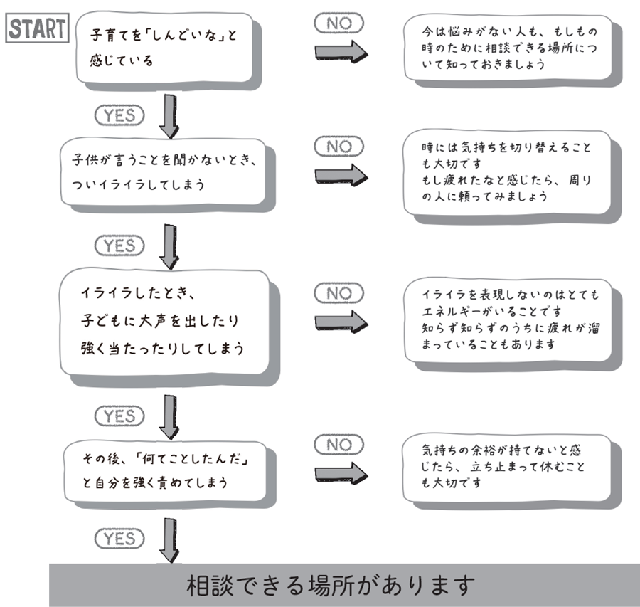 子育てには迷いや不安がつきものです。今の心の状態をフローチャートで見つめてみましょう。