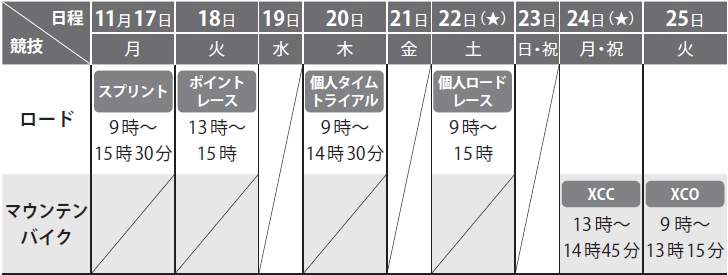 クロスカントリーショートトラック(XCC)、クロスカントリーオリンピック(XCO)が行われます。オリンピックでも使用された難易度の高いコースで見どころ満載です。