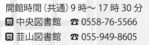 韮山図書館:毎週水曜日、4日(火)、28日(金)