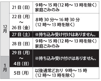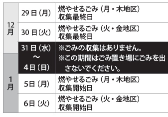 ○年末年始のごみ収集日