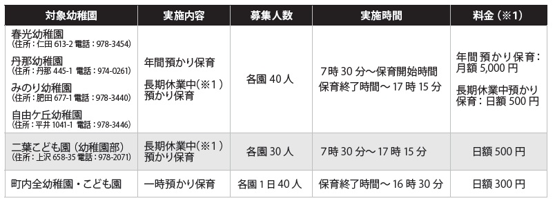 ○一時預かり保育は、夏休み、冬休み、春休みは実施しません。