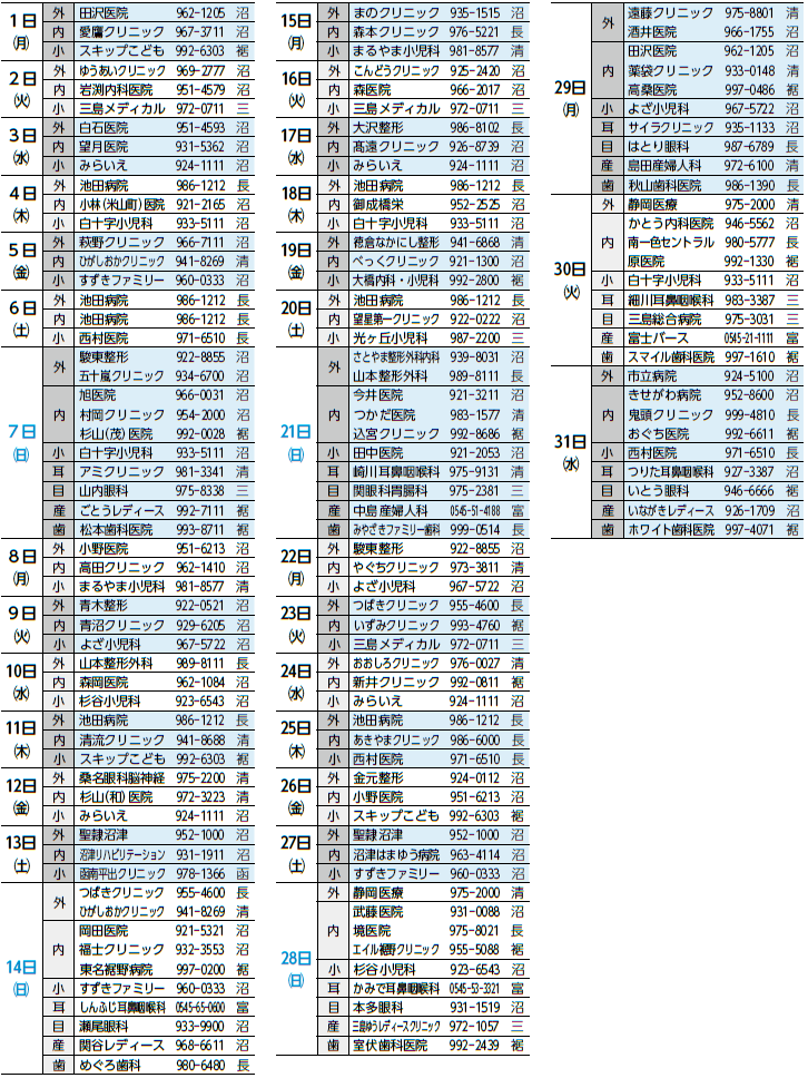 ◆沼津夜間救急医療センター(外科・内科・小児科)