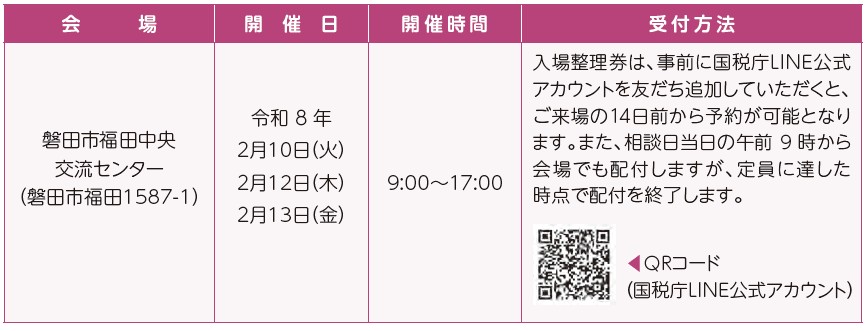 税務署では、給与所得者の方を対象に、住宅ローン控除相談会を次のとおり実施します。