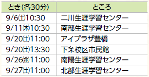 申込み:9/2(火)~9/15(祝)に図書館ホームページで必要事項を入力