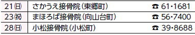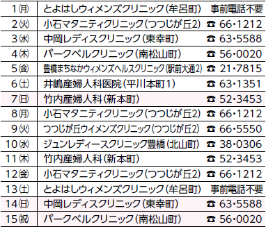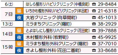 上記時間帯以外は豊橋医療センター(【電話】62-0301)・成田記念病院(【電話】31-2167)・市民病院(【電話】33-6111)