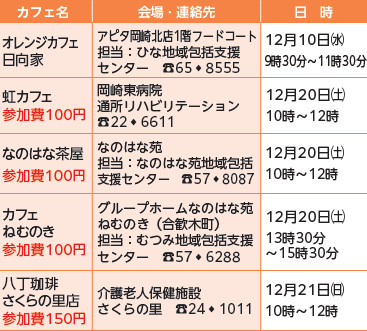 申込:市電子申請届出システムまたは往復はがきで、希望する会場、郵便番号、住所、氏名(ふりがな)、年齢、電話番号を、〒444-8601 長寿課「頭と体の認知症予防スクール係」へ。12月19日(金)必着