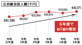 市では、採算の取れないバス路線を維持するため、毎年多くの公的資金を投入しており、令和6年度の公的資金投入額は4億4千万円を超え、この6年間でおよそ1億円の増加となっています。