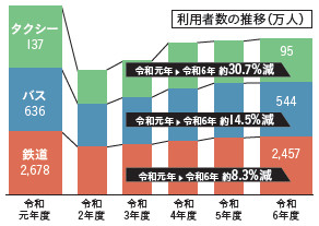 公共交通の利用者数はコロナ禍前の状況まで回復しておらず、未だ厳しい状況が続いています。