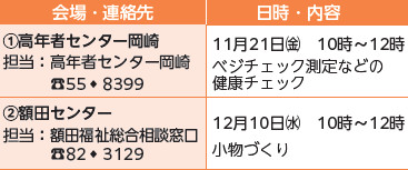 申込:11月7日(金)から前日までにスクエアガーデン地域包括支援センター(【電話】57-1133)へ。