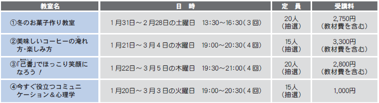 ※料金の記載がないものは無料。申し込みの記載がないものは当日直接会場