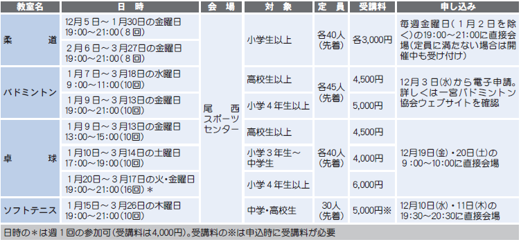 スポーツ 【スポーツ】スポーツ教室 27/45 前の記事 次の記事 発行日 : 2025年12月01日 自治体名 : 愛知県一宮市 広報紙名 : 広報一宮 2025年12月号 市内在住・在勤・在学の方が対象 スポーツ協会(スポーツ課内) 【電話】85-7078 いちい信金スポーツセンター(県一宮総合運動場) 【電話】77-0500 Tweet シェアする 【スポーツ】スポーツ大会 情報BOX-スポーツ