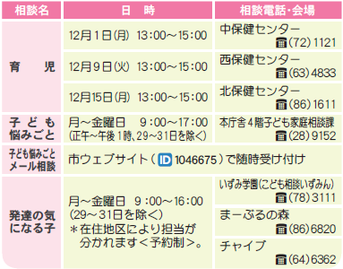 ◆12月の開場日時(子育ての困り事に対応。電話相談も可)