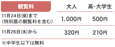 ※11月3日(祝)は開館記念日のため無料