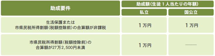 高校の就学費用などの経済的負担を軽減するため、助成金を交付します。