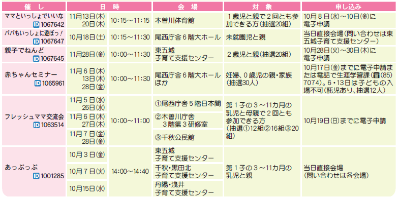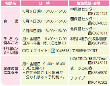 ◆10月の開場日時(子育ての困り事に対応。電話相談も可)