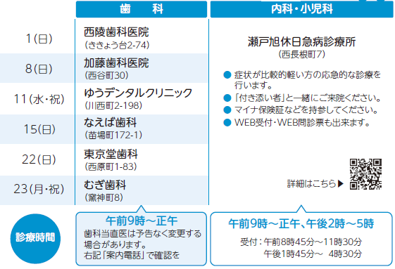 ●診療時間以外の場合、可能な方はかかりつけの医師にご相談を。その他の方は救急医療情報センター(【電話】0561-82-1133)へ。