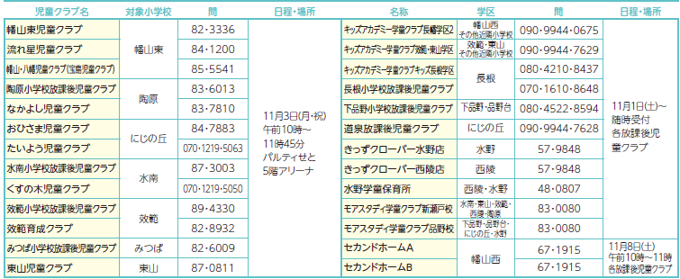 詳細は各放課後児童クラブ・放課後学級にお問い合わせください。
