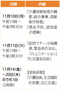 対象:全日程参加できる方(ヘルパーの資格のある方は実地研修受講不要)