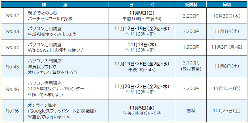 ※各講座抽選の際、結果はメールします。※教材を持っている場合は受講料から差し引く場合があります。