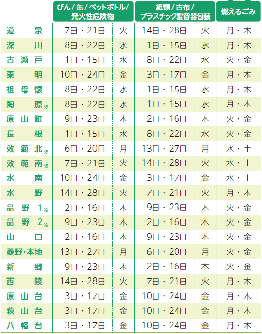 ●ごみ・資源物収集カレンダーは市役所・支所・市民サービスセンターで配布
