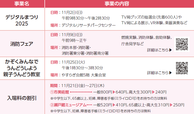 瀬戸市は11月25日(火)が「県民の日学校ホリデー」