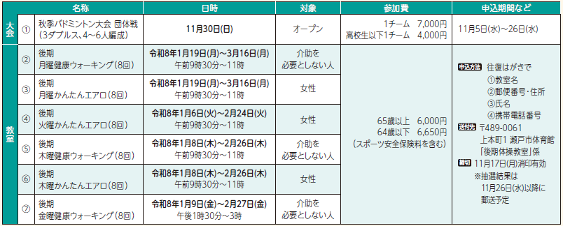 申込みは市体育館窓口へ(午前8時30分~午後8時)※日曜は午後4時