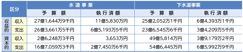 ・収益的収支/使用料金収入や浄水費、汚水処理費など、日々の営業活動に必要な収支