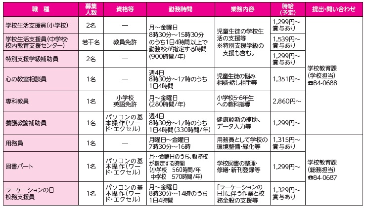 提出書類:会計年度任用職員履歴書兼登録シート(登録シートは、学校教育課および市ホームページにあります。)