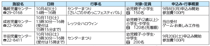 ※児童センターでは他にもたくさんの行事を企画しています。詳しくは、各児童センターだよりをご覧ください。