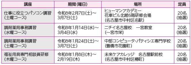 対象:市内在住の母子家庭の母、父子家庭の父および寡婦の方で、就業への意欲があり、かつ全日程に出席できる方
