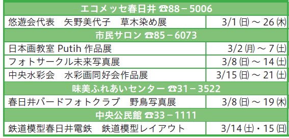 イベントの詳細は各団体へ問い合わせてください。
