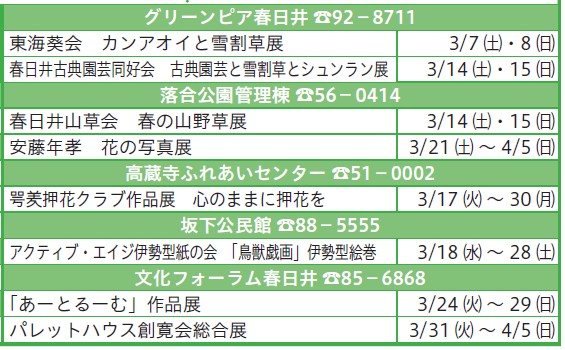 日時:(1)3/14(土)13:30~14:30(2)3/14(土)15:00~16:00(3)3/17(火)10:00~11:00(4)3/19(木)10:00~11:00
