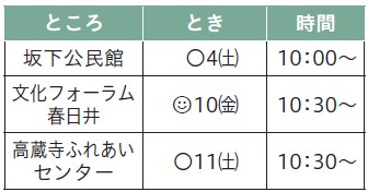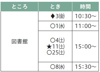 とき:11月の毎週水曜(全4回)11:00~11:50